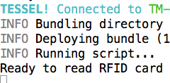 In the case shown in the example we need to have a list of valid RFIDs, which includes the 026e9a03. Your RFID code will be something completely different, so please take note of that code and use it instead. The first step will be getting the Tessel set up.