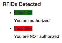 This entry goes into the detail required for receiving and interpreting those Tessel RFID events. Every time a message is sent with an RFID you would need to interpret the message, extract the data, and match it against known RFID codes.