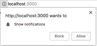 Now when we refresh our page, we should get an alert that asks us to allow notifications. Let's hit the allow button so we can see our beautiful real time notification. And just like that, we've got our notification showing up on the top right of our screen.