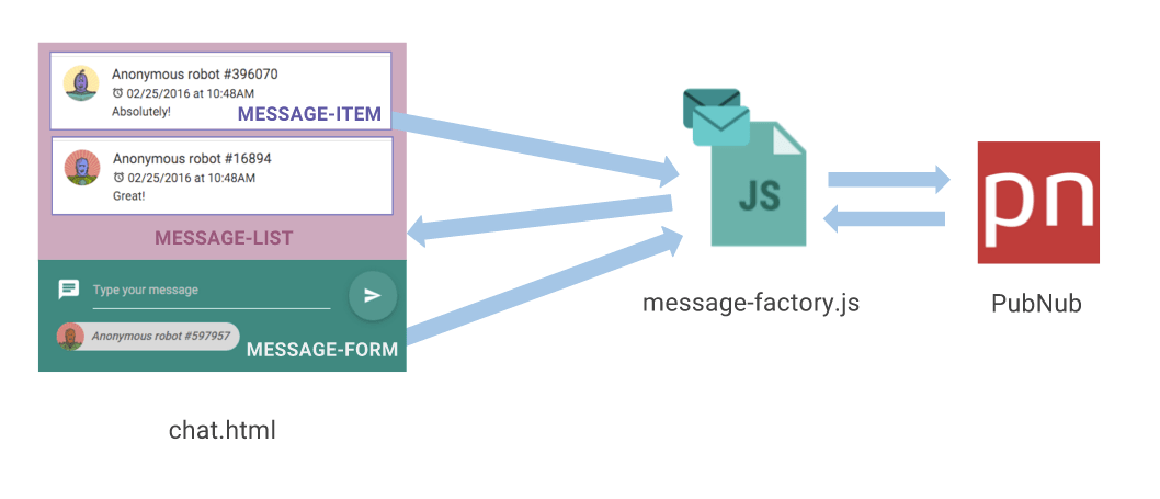 In the last tutorial, we built a chat app with infinite scroll consisting of a UI split in components and a Message factory, which directly communicated with PubNub.