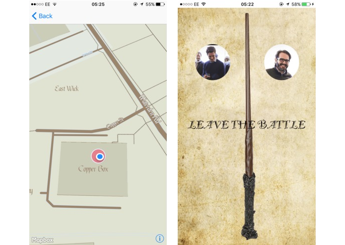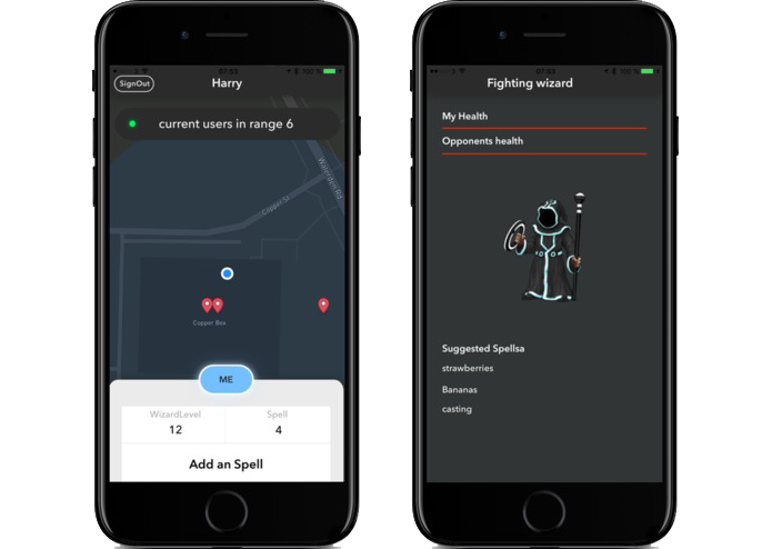 Marauder's Battle by Crispy Bacon allows users to find one another on a live-updating map, then initiate a battle. Spells are cast by making gestures using their smartphone, and initiated by saying the spell name into the microphone. And we were proud to award Marauder's Battle as the winner of the contest!