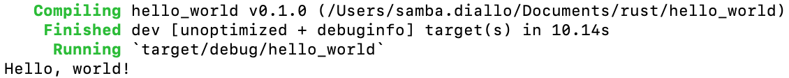 If you run your code again, it should build all the crates, and then output “Hello World.”