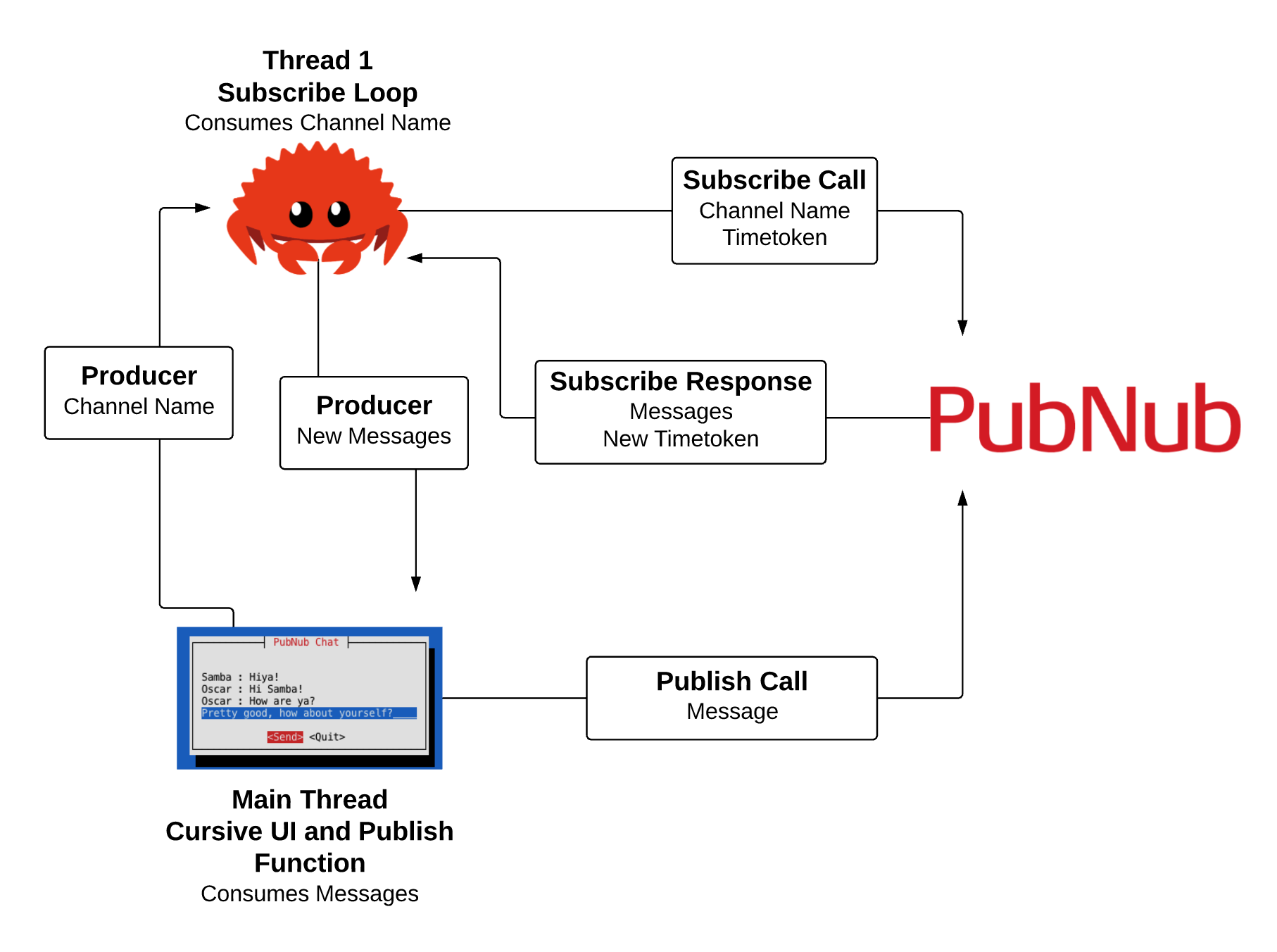 In this tutorial, we created a terminal chat app in Rust. It uses PubNub’s Pub/Sub to send and receive messages through a Cursive Terminal UI. This is only an example of what is possible with Rust and PubNub. If you’re using Rust to compute an algorithm, or run a game, and you need some I/O around the world, PubNub can help.