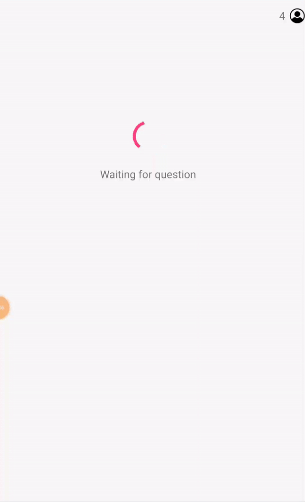 The second will be the Player Interface, an Android app, from which the players will engage in the game playing experience. Here they will see a loading screen and the number of players currently playing the game, until a question is uploaded from the admin. Once uploaded, the player will see the question, the corresponding answer options, and a 10-second countdown timer. This experience is shown in the gif below.