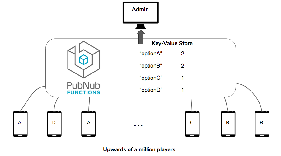 Building such an app, however, includes huge technical challenges such as scaling up to a million users, displaying the questions to all of them synchronously, receiving all their responses in real time, and incrementing answer counts and returning all this data back to all the players instantly. With PubNub, a real-time data stream network, developers can reduce this challenging task to a much more intuitive and simplified one.