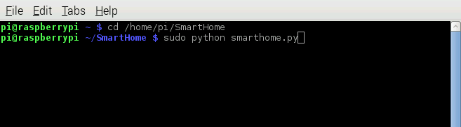 First, you’ll need to create a folder so that you can store all your project files in one place. Open the File Manager by clicking its icon in the toolbar at the top of the screen and navigate to the folder called Pi. The go to File > Create New… > Folder to create your directory. Give it a simple name, as you’ll have to refer to it in order to run your script. Next, you need to create your main script. Go to Menu > Accessories > Text Editor to open up a blank document, then save it to your folder as smarthome.py.