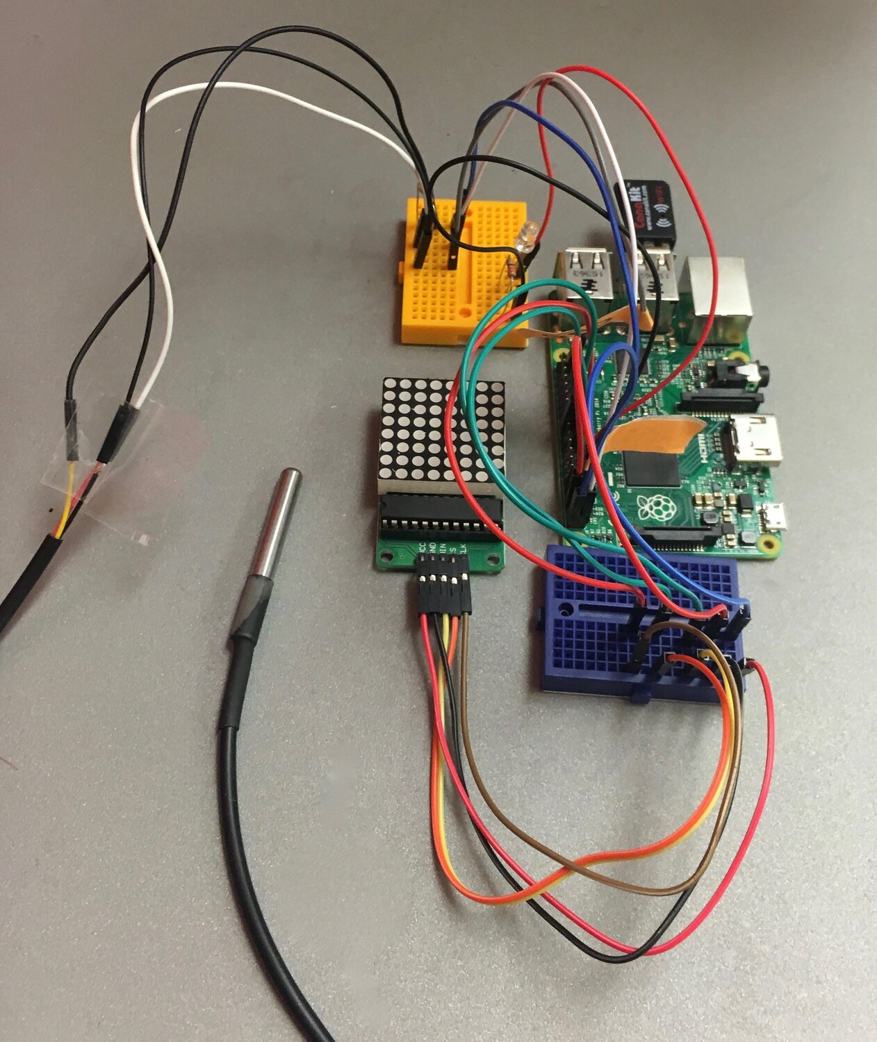 def _callback(m, channel): if m.get("light") == "on": GPIO.output(LED_PIN, True) if m.get("light") == "off": GPIO.output(LED_PIN, False) Reading a Waterproof Temperature Sensor