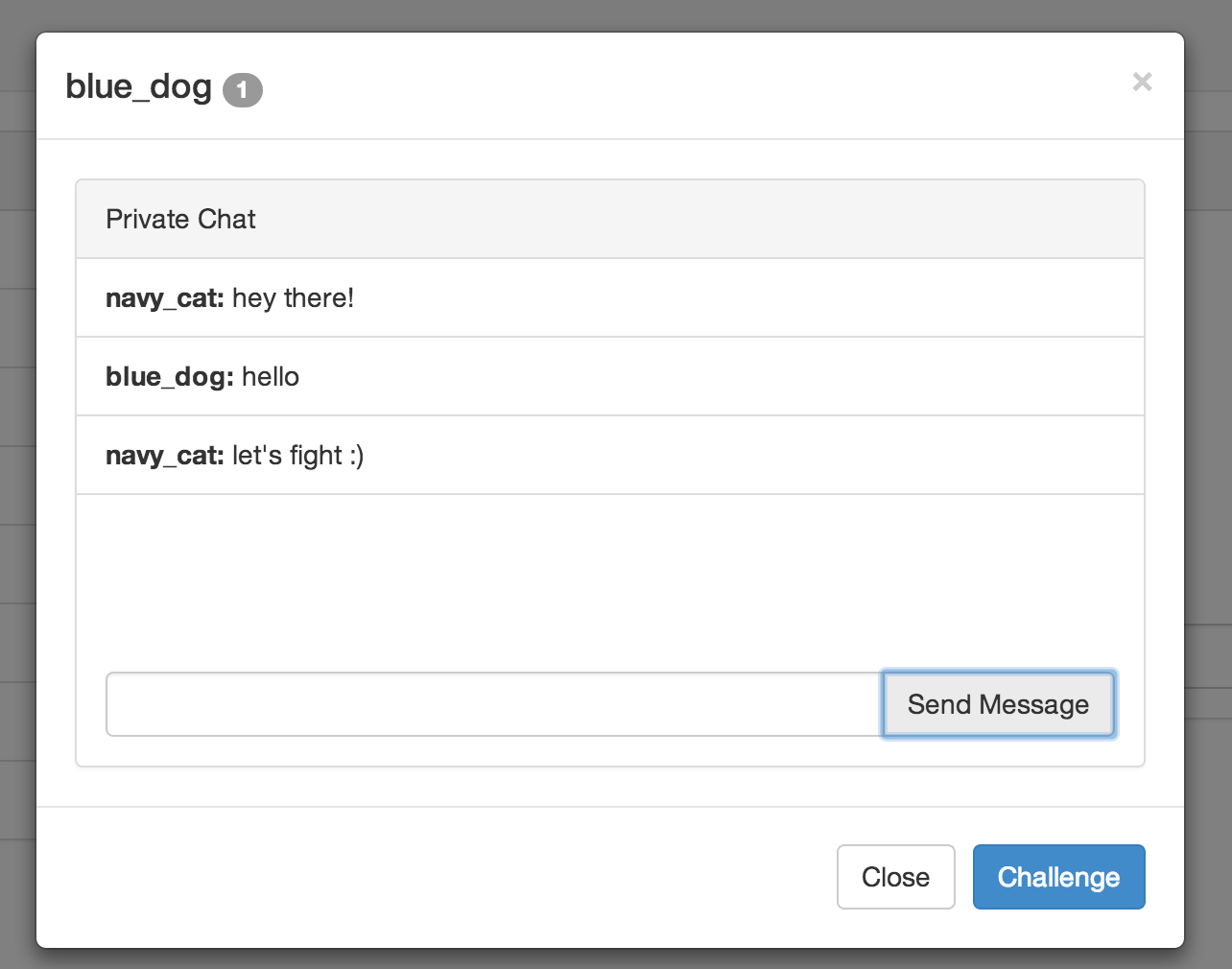When a User object is clicked on, we're going to fire the function above rather than challenging the user. The private chat modal will have a button that adds the ability to challenge a user back.
