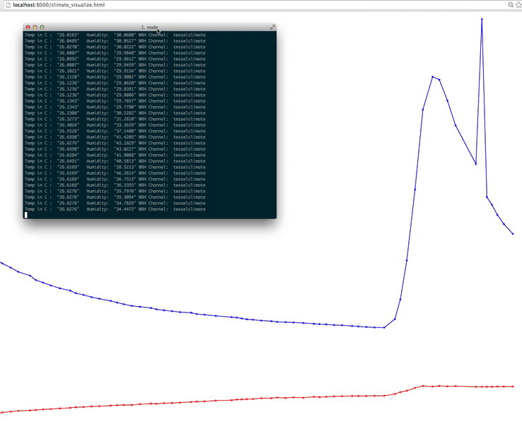 With the Tessel already running, start a server locally and view the Angular file in your browser. Do you see a graph of temperature and humidity over time?