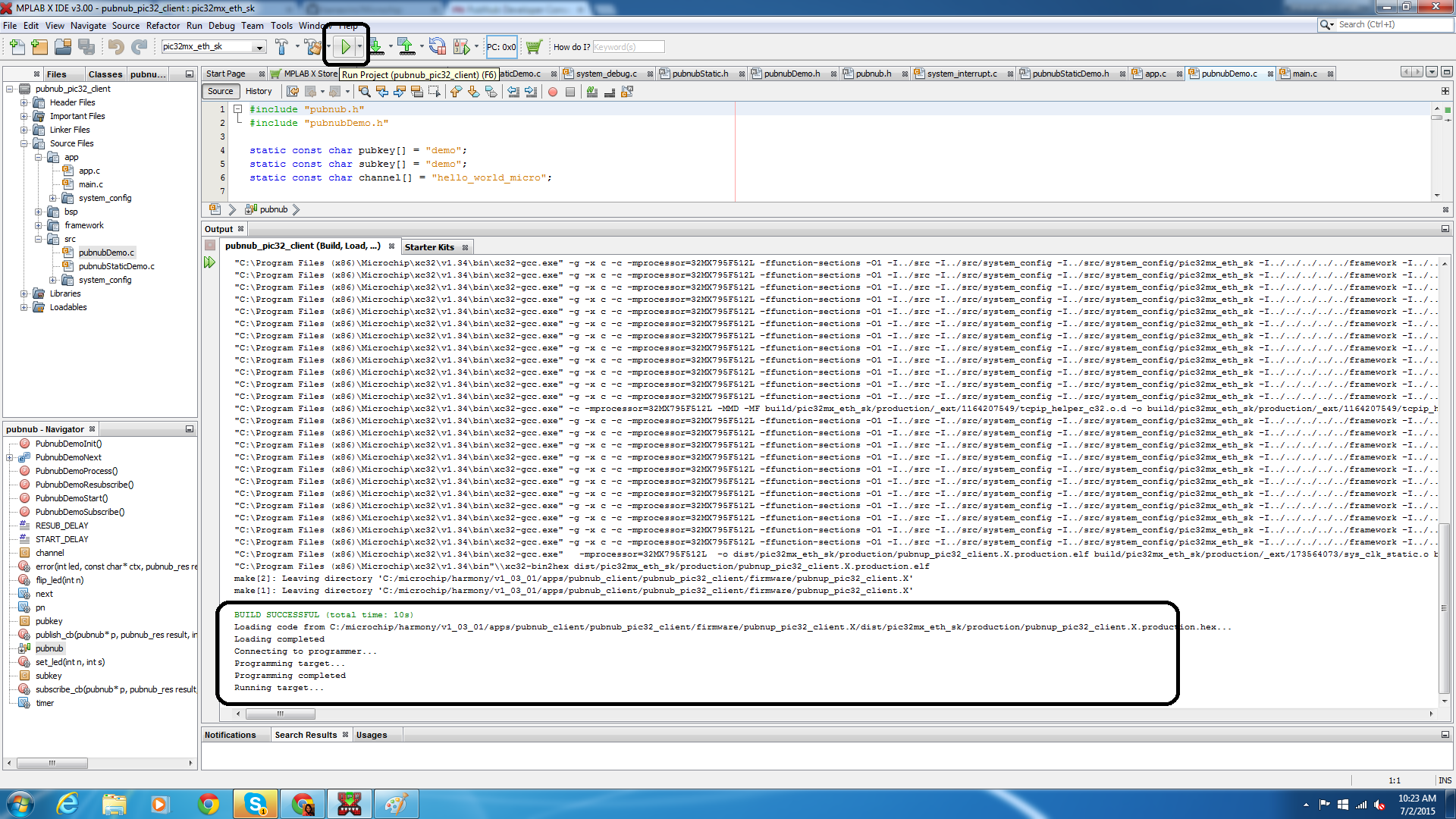 Running the PubNub PIC32 Harmony project