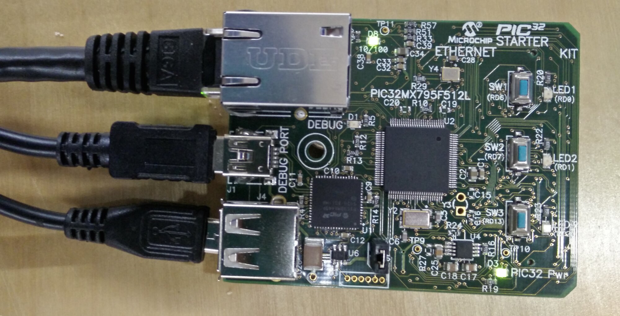 - PIC32 Ethernet Starter Kit – The PIC32 Ethernet Starter Kit provides the easiest and lowest cost method to experience 10/100 Ethernet development with PIC32. The chip used on the board is PIC32MX795F512L.