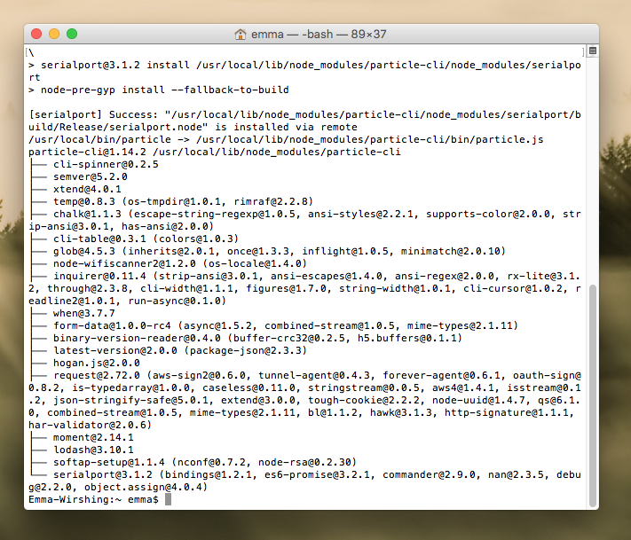 Next, you’ll need to set up your particle with the following command, then input your Particle username and password when prompted.