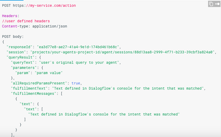 - Receiving the webhook request from Dialogflow