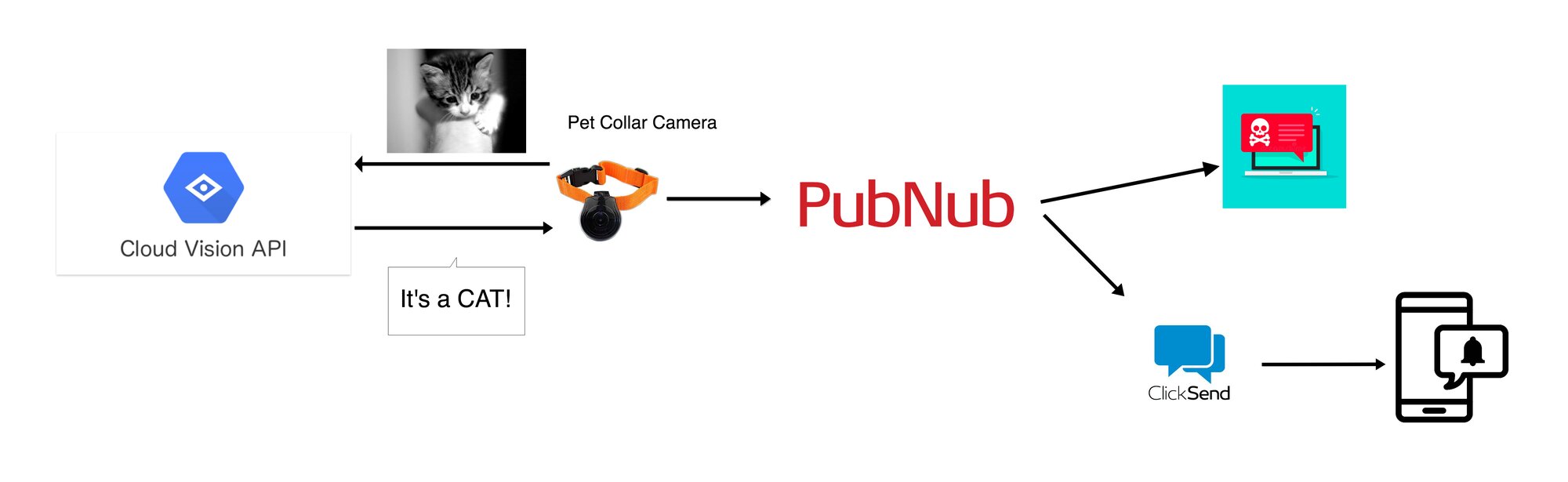 In this tutorial, you'll learn how to recognize an image using Google Cloud Vision API and alert the user with an SMS using ClickSend API. PubNub forms the skeleton of the application and interconnects the features.