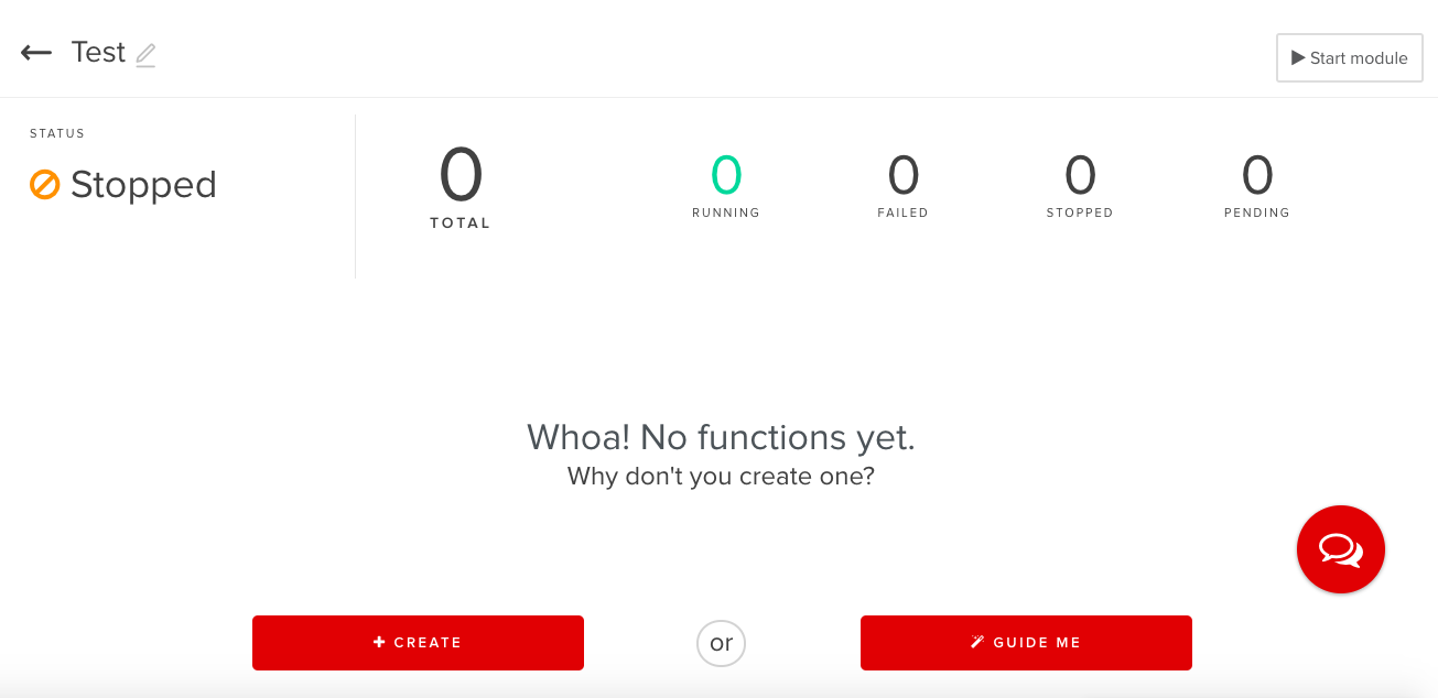 Enter into your App and hit the “Functions” tab on the left side and click “Create Module”.