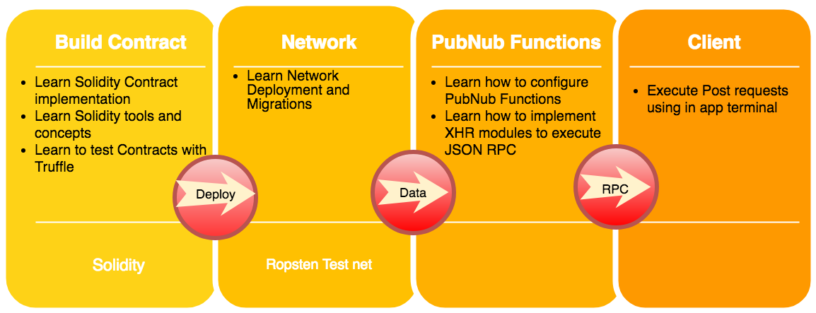 The magic of PubNub lies in the fact that Functions allows you to deploy a block of JavaScript code globally within seconds. Since any public Ethereum contract can be accessed through JSON RPC calls, this allows us to do some very cool things. From data processing to Blockchain surveillance, developers are able to call multiple Blockchain functions to receive data and have separate JavaScript code to asynchronously interact with that data all in real time!