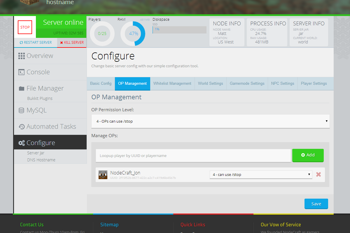 NodeCraft provides online game server hosting for gamers and community developers, including dedicated servers, Minecraft servers, and additionally web hosting. With NodeCraft’s custom all-in-one control panel, developers can easily monitor and control all aspects of their game server.