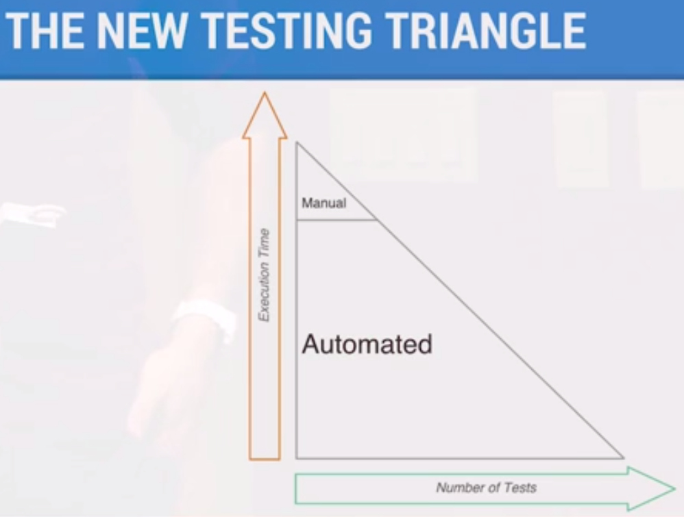 The Testing Triangle says that you should write more unit tests than end-to-end tests simply because end-to-end tests take such a long time to run. With thousands of tests and high execution times, it's going to take forever for your build to run. And that's why the Testing Triangle tells you to push as much as you can down to the unit level.
