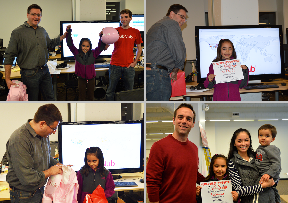 On Friday, our CEO Todd Greene presented Seti with her new, official PubNub gear. Check out the pics below to see our official sponsorship ceremony: