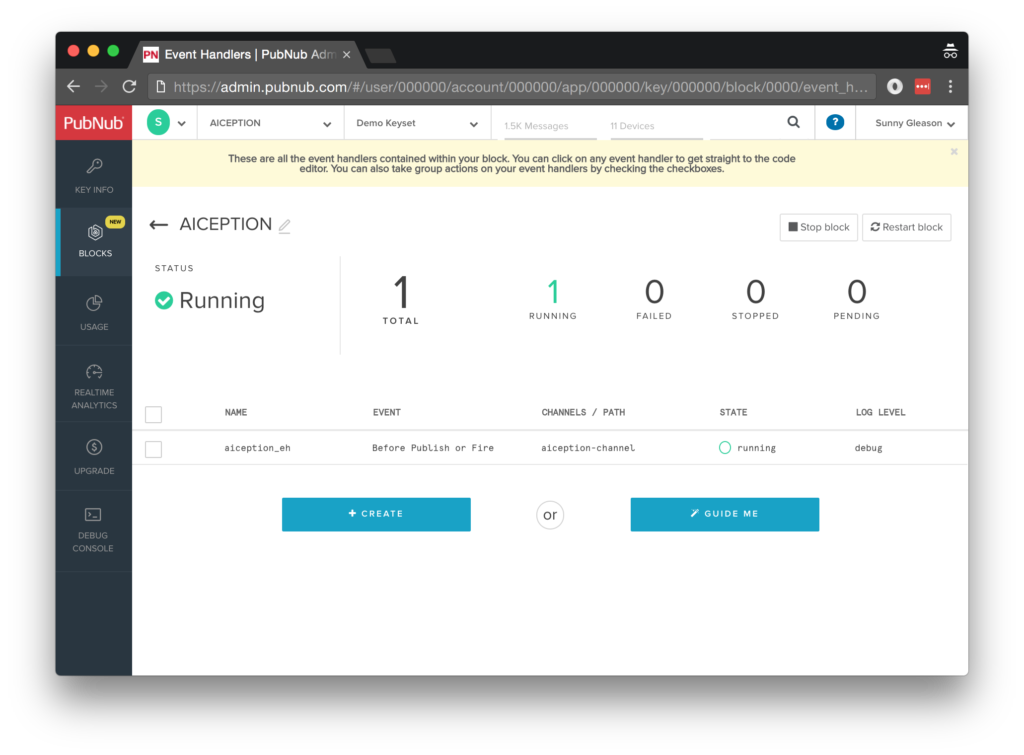 You'll want to grab the 22 lines of BLOCK JavaScript and save them to a file called pubnub_aiception_block.js. It's available as a Gist on GitHub for your convenience.