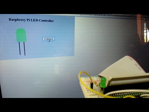 On receiving the toggle request, the Raspberry Pi toggles the state of the LED and sends a response back to the web page with the current state. Web page updates the visual indicator for the LED based on the received state information.
