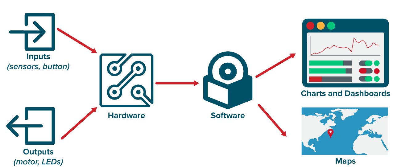 The diagram below shows the general design pattern for a hardware-to-software communication app.