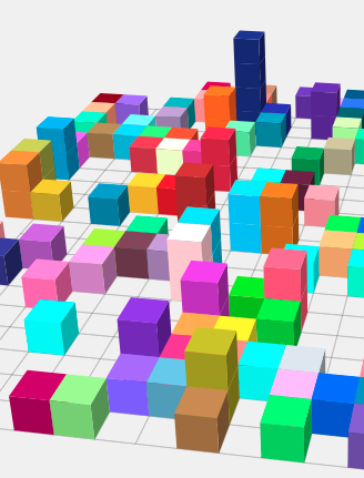 function addBlockToScene(x, y, z, c, o) { var material = new THREE.MeshLambertMaterial( { color: c, opacity: o, shading: THREE.FlatShading } ); var block = new THREE.Mesh( new THREE.CubeGeometry( 50, 50, 50 ), material ); block.material = material; block.position.x = x; block.position.y = y; block.position.z = z; block.matrixAutoUpdate = false; block.updateMatrix(); block.overdraw = true; scene.add( block ); return block;}function createBlock(x, y, z, c, o) { // make a "hash" of the coordinates var place = blockHash(x, y, z); // block_index is the JavaScript object in which we store the block data if (!block_index[place]) { var block = addBlockToScene(x, y, z, c, o); block_index[place] = block; }} |