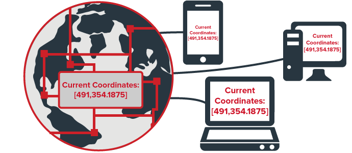 D3 uses a listener for mousemove events over the globe. You take the coordinates, which are provided in a simple array [coord1, coord2]. You then transmit them using the PubNub javascript library and the “pub” method.