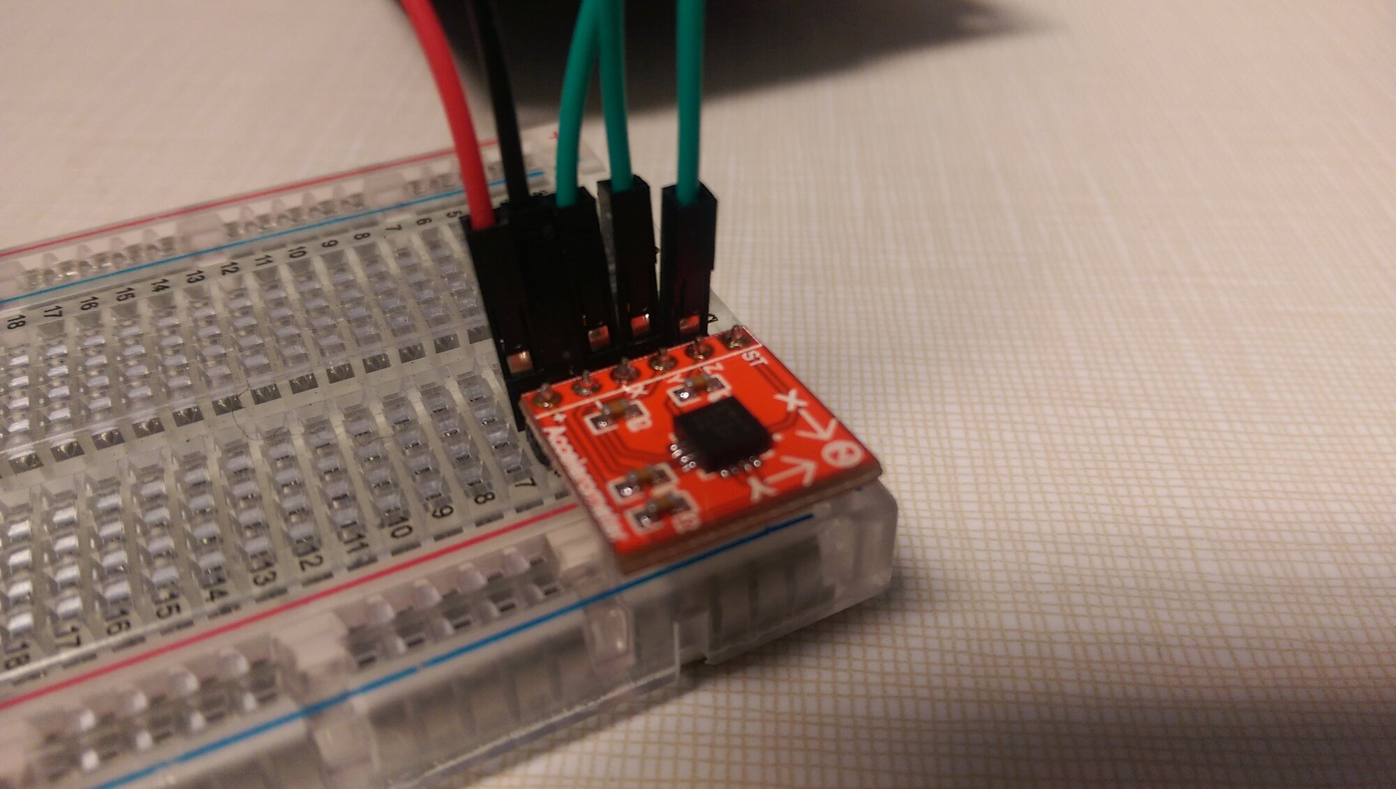 Great, now let's wire the accelerometer. This particular device is really simple, there are 6 connections.