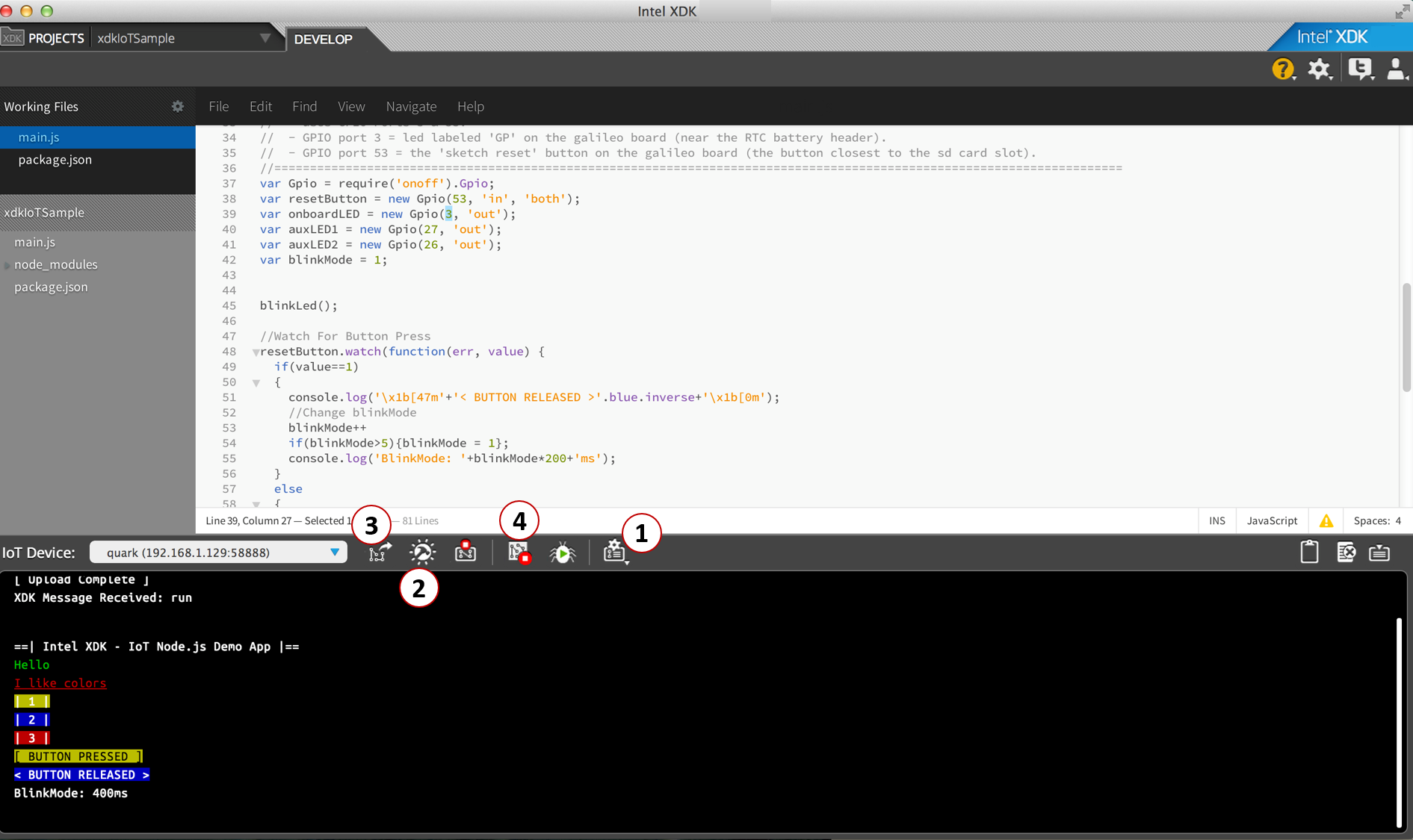 - NodeJS: Running on the Galileo linux environment.