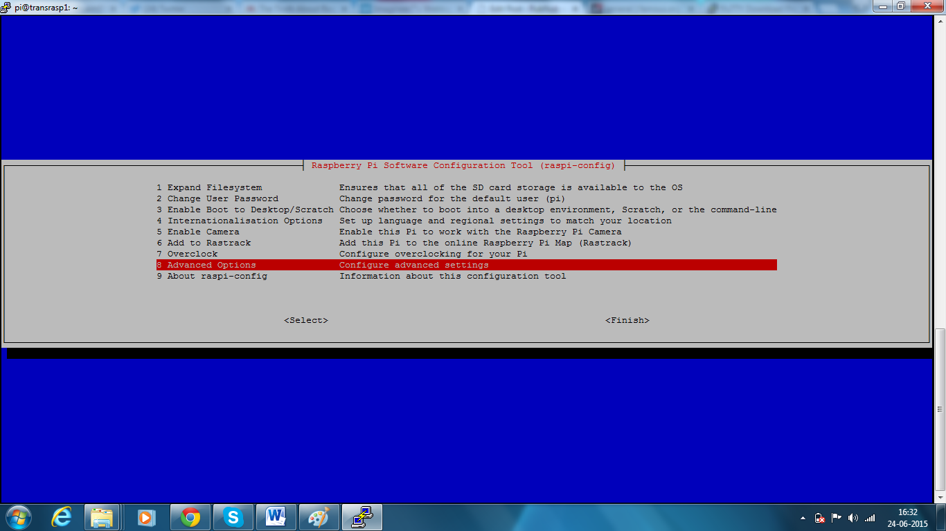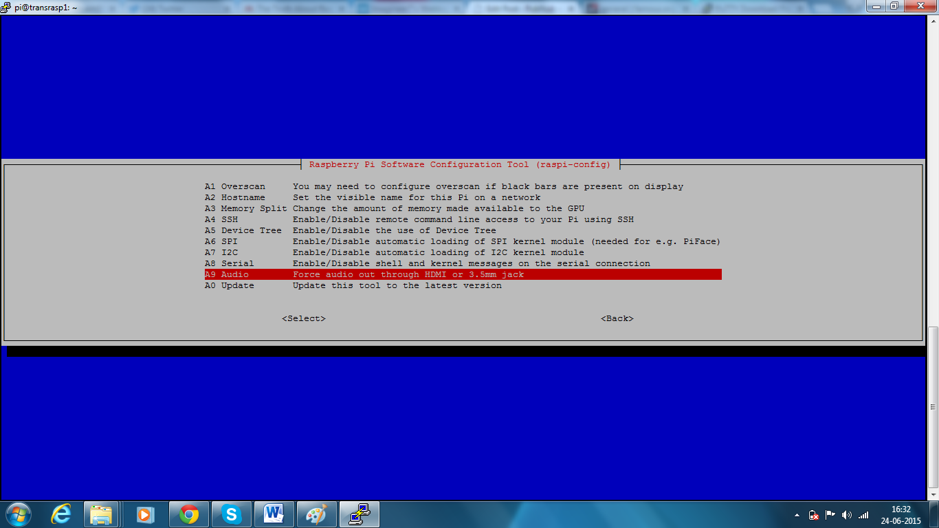 Next, we need to select the audio output to be used by Raspberry Pi. Open up the raspi-config configuration tool from the command line and follow the below procedure: