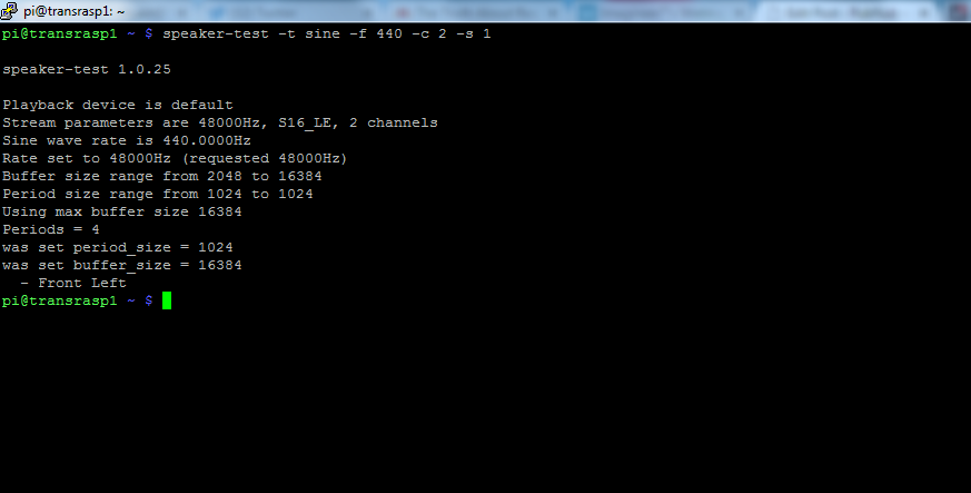 If everything went well, you should have heard a quick clip of an opera singer's voice. If the audio volume is too high or low, then the volume can be adjusted by using "alsamixer" utility.