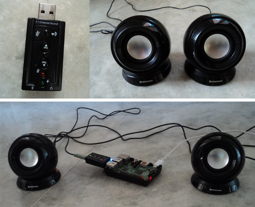 We need to first setup the audio driver for Raspberry Pi. For this application, we are using a standard USB sound card which attaches to one of the USB ports of the Raspberry Pi. We'll be using a standard desktop speak from Lenovo, but feel free to use any speak system you want.