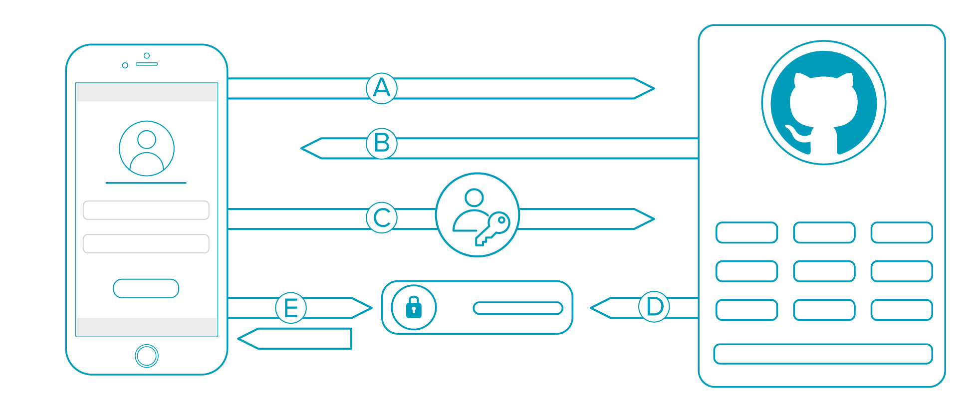 - Github re-directs your app to the proper endpoint that prompts the user for authentication.