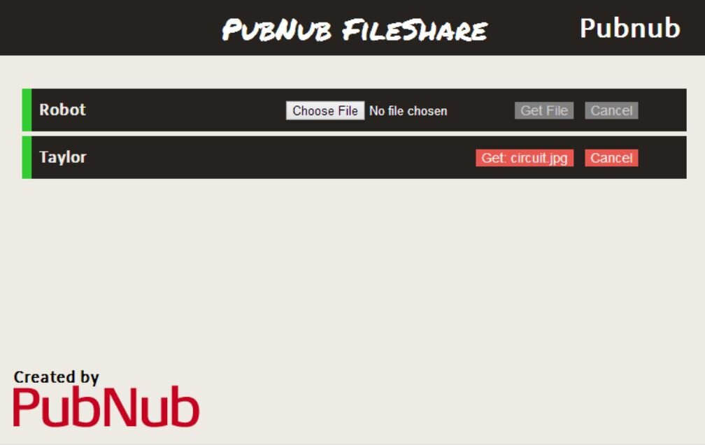 PubShare is a simple demonstration of what is possible when combining the abilities of PubNub with those of the WebRTC DataChannel. As the name suggests, PubShare lets you share files with other people over the peer-to-peer connection provided by WebRTC.