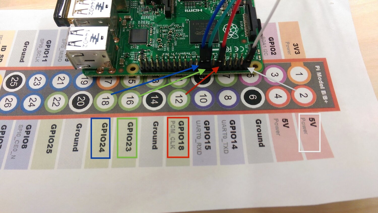 I built my Raspberry Pi Hue using the Raspberry Pi Model B+. You will have to find which pins you want to use, as well as which pin is the 5V power source. If you are using the Model B+ or Model B, you can mimic the picture.