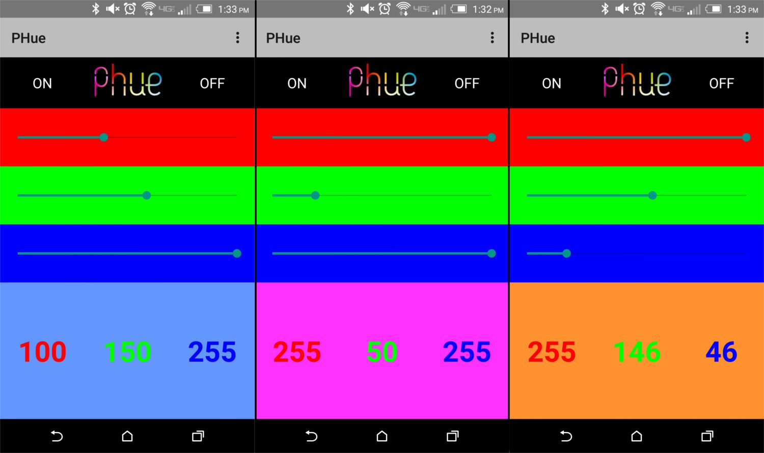 I will now briefly cover an overview of how I created an Android interface for the PHue lightbulb. It will let you select any RGB color for your light to show. The RGB LED I used was surprisingly accurate!