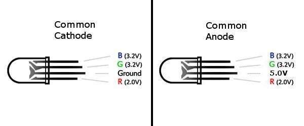 This tutorial will be written for an RGB LED using a common anode. I will point out the blocks of code that will need to be different when using a common cathode. Read about your LED before proceeding.