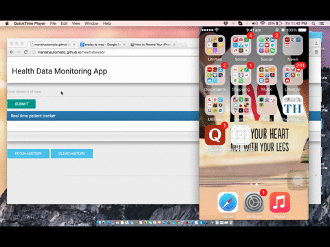The iOS application will collect the heart rate readings and stream the data to a real-time dashboard. The iOS phone’s camera will be used to capture the heart rate. When the app user presses a finger against the camera, an image processing algorithm detects the red component on the finger image to sense the blood flow and then calculates a reading.